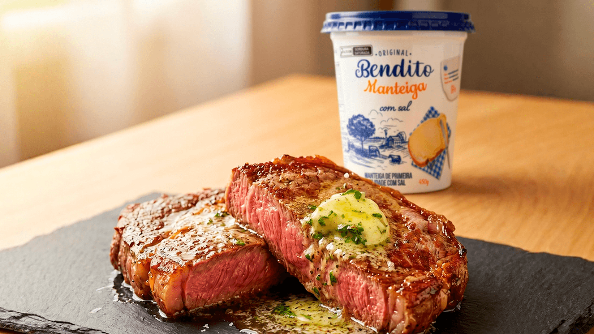 Tem um preparo que os franceses guardam há séculos e que cabe em qualquer cozinha brasileira. A Manteiga Maître d'Hôtel é simples de fazer, dura meses no freezer e transforma qualquer prato com uma generosidade que parece segredo de chef. Feita com a Manteiga Original Bendito, salsinha fresca e limão, ela derrete sobre o bife quente, escorrega sobre peixe grelhado, some dentro de uma batata assada e deixa tudo com aquele sabor que as pessoas pedem a receita.